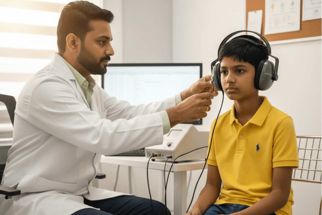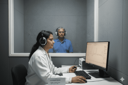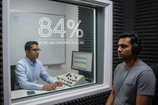 A Speech Audiometry test is performed to check how well you detect and understand spoken speech words. Unlike tone audiometry, it focuses on clarity: how clearly speech comes through at different loudness levels. You’ll wear a headset connected to a calibrated speech audiometer while an audiologist plays recorded or live voice lists. Responses are scored and turned into actionable speech audiometry test results that guide the treatment and hearing-aid programming.